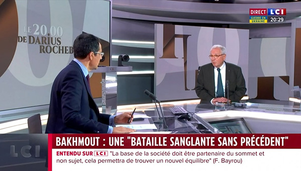 Darius Rochebin et le Général Dominique DELORT sur LCI invité de Darius ROCHEBIN le dimanche 19 février 2023 de 22 h 00 à 24 h 00.