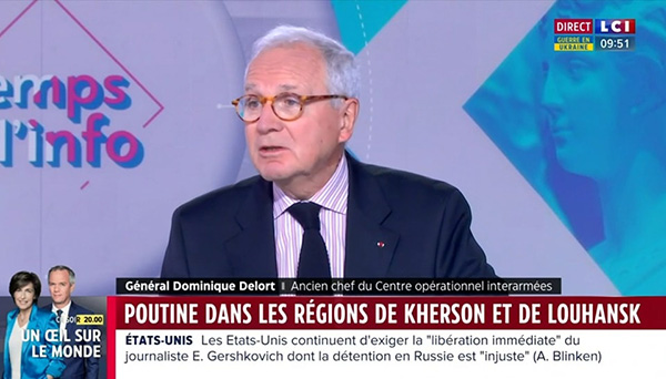 Général Dominique DELORT invité sur LCI le mardi 07 mars 2023 de 12h00 à 15h00